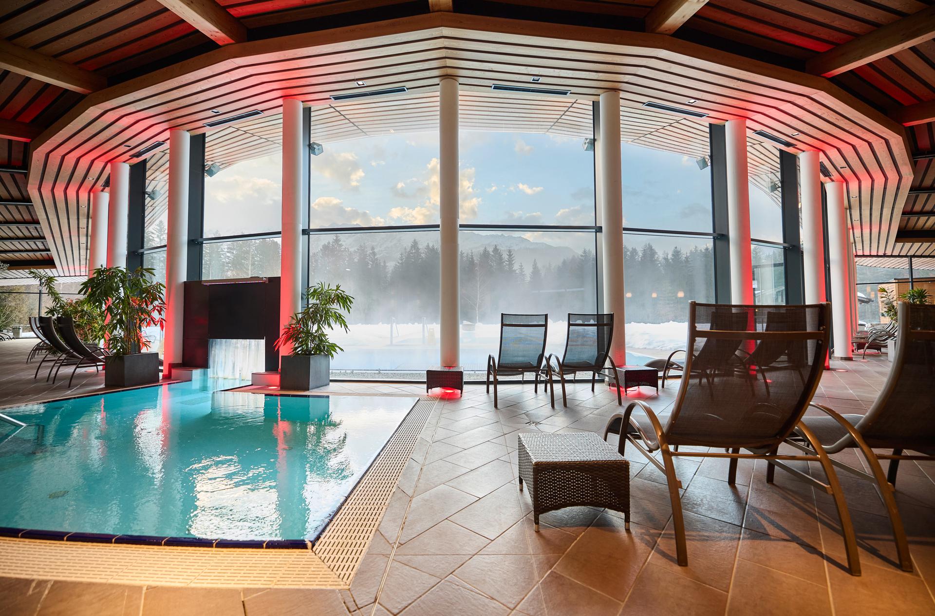 Zwei Außenbecken sowie ausreichend Relaxflächen im Saunadorf und im Pssst-Raum runden das Entspannungs-Erlebnis ab.